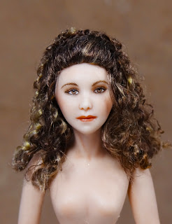 My customer wanted me to make a doll kit that she will dress of her daughter for her wedding. She did not want a custom sculpted doll. She chose the face from my selection of doll kits I carry on my website: Gina Bellous Dolls . After narrowing it down, she chose Lydia from a mold by Stacy Hofman. I had to agree with her that this was a good choice. It is a mold that is not available commercially, but has no dropped shoulders. Her daughter is wearing a strapless gown and her shoulders will be bare so no matter what type of shoulders we chose, there will be a seam showing.